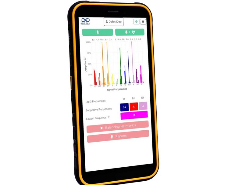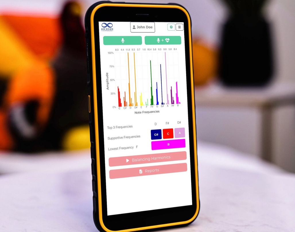 The AO Scan Mobile is a practitioner-grade bioresonance device that enables you to run unlimited scans, optimize and balance the body in every scan, create custom sound therapy based on imbalances found in your voice, imprint and broadcast frequencies and so much more.